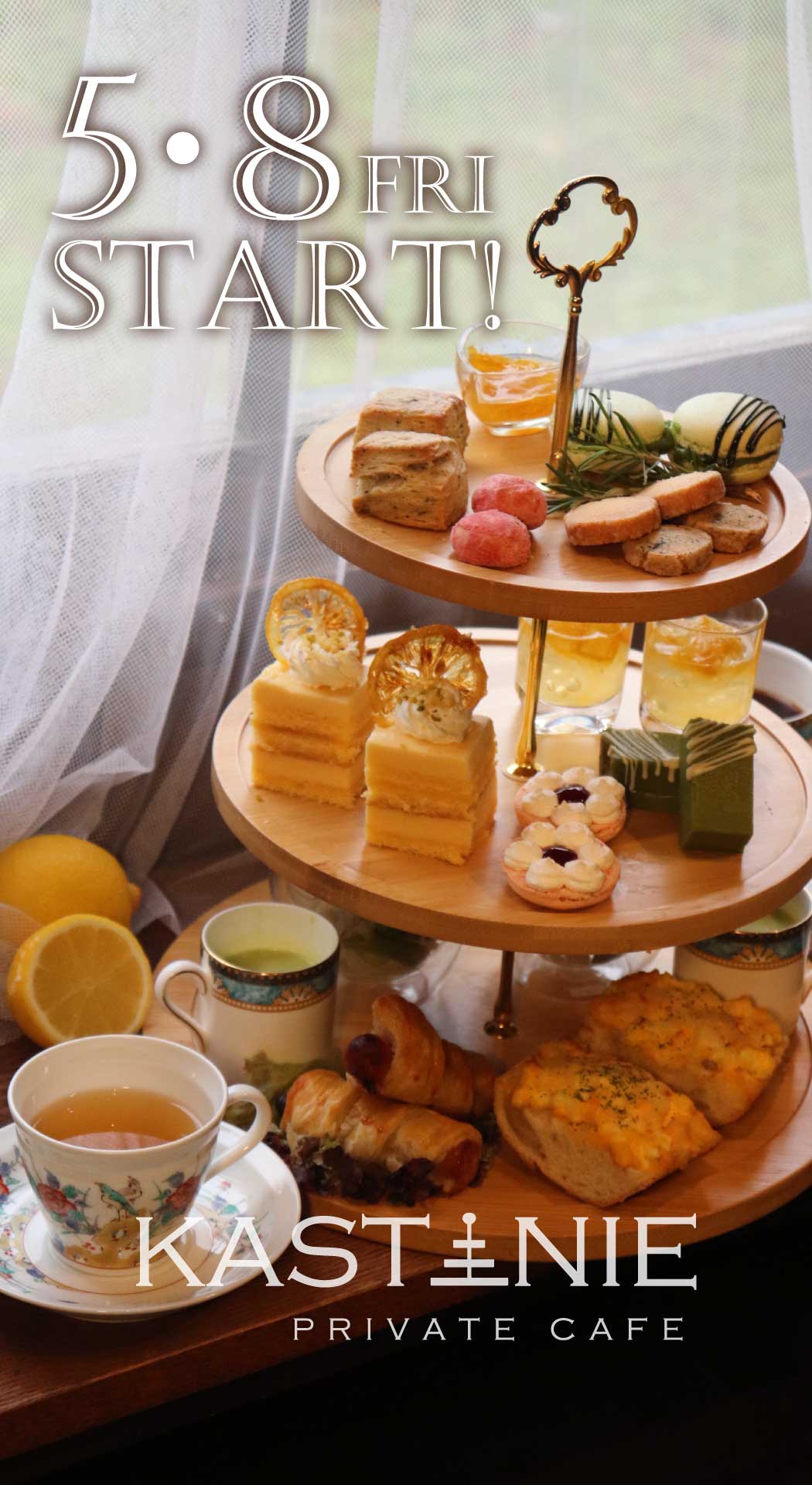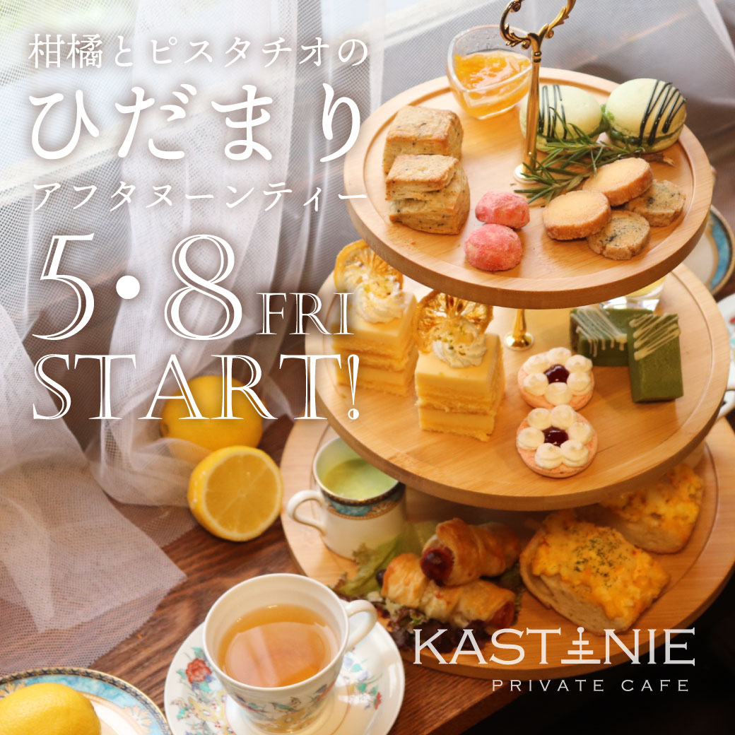 「プライベートカフェKASTANIE」では5/8(金)より新メニューアフタヌーンティーがスタート!